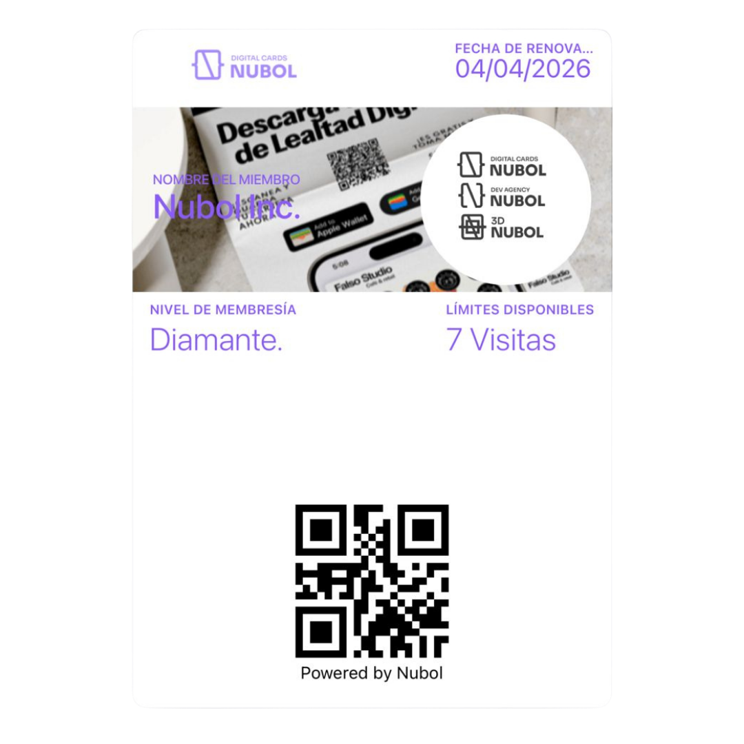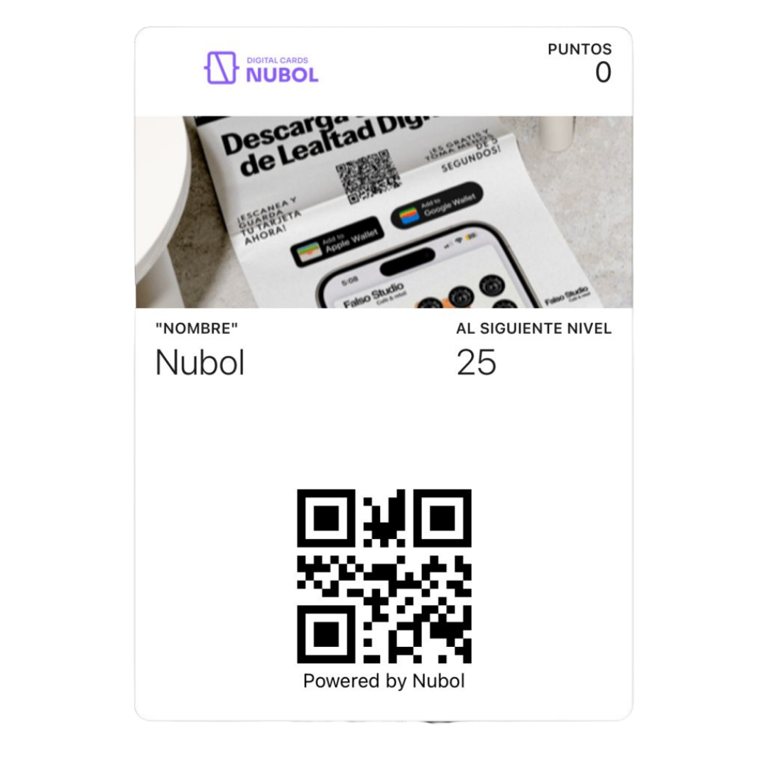 Nubol Cards es un programa de lealtad digital que tus clientes agregan a Apple Wallet y Google Wallet. Sin app, sin fricción, y con recompensas, campañas y medición